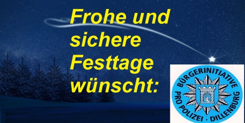 Hinweis: Pro-Polizei-Dillenburg e.V. ist politisch neutral und gibt jedem Kandidaten jeder zugelassenen Partei den gleichen Raum. Einladungen zu politischen Terminen nehmen wir (nach unseren Möglichkeiten) wahr ohne Ansehen der Partei oder Organisation die einläd.